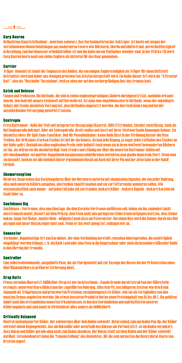 verstanden: leckere Köder - leckere Signale - leckere Karpfen im Sack! Oder