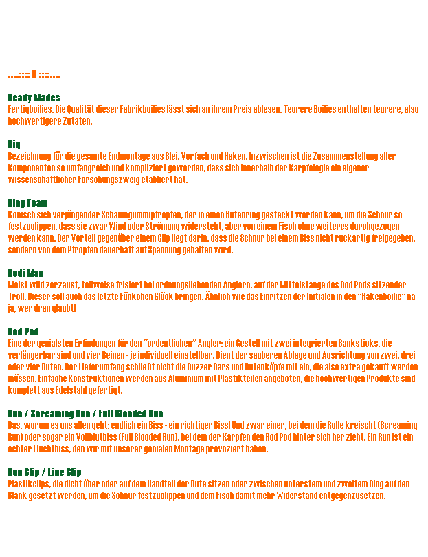Bezeichnung für die gesamte Endmontage aus Blei, Vorfach und Haken.