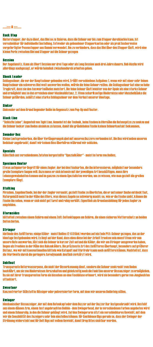 Methode des Anfütterns: einige Köder - meist Boilies (2-6 Stück)